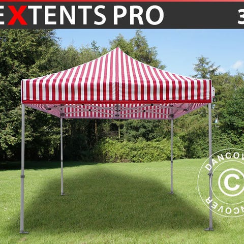 Foldetelt FleXtents PRO med et flot stribet design i høj professionel kvalitet. Perfekt foldetelt til markeder, fester og karnevaler. Inkl. 4 sider, jordspyd og en kraftig praktisk taske med hjul. Fleksibelt, funktionelt og holdbart foldetelt.