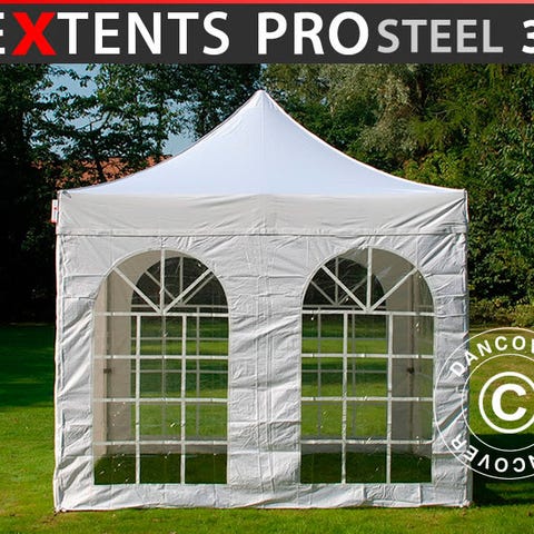Foldetelt FleXtents Xtreme – markedets stærkeste, professionelle foldetelt, der kan sættes op på blot 60 sekunder. Inklusiv 6 sidevægge, jordspyd og praktisk transporttaske med hjul. Et meget fleksibelt og holdbart foldetelt.