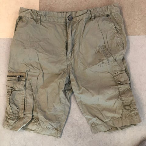 Par denim shorts med elastisk talje og knaplukning foran. Shortsene har to forlommer og to baglommer med dekorative sømme. Materialet har en let vaskeeffekt.