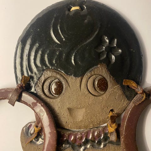 Dette bronzerelief viser en pige i profil stående med bøger. Figuren er afslappet placeret med en enkelt bog liggende ved hendes fødder. Pigen er iført en kjole og har håret sat op med sløjfer. Relieffet har en størrelse på 35x20 cm og er lavet af metal med en brunlig nuance og lidt patina. Det er egnet til dekoration på væggen eller som en del af en samling af kunstneriske relieffer.