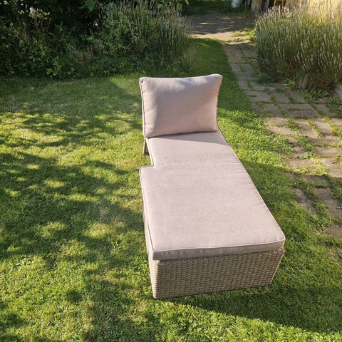 IKEA Söderhamn chaiselong i gråt stof. Modellen har bredde på ca. 90 cm, dybde på ca. 163 cm og højde på ca. 83 cm. Siddedybden er ca. 124 cm og siddehøjden ca. 45 cm. Chaiselongen har polstret sæde og ryglæn samt lav sokkel. Velegnet som loungemøbel i stue eller på overdækket altan/udestue, hvor der er plads til at ligge eller sidde afslappet. Nyt stof kan købes hos Ikea, hvis man ønsker anden farve.