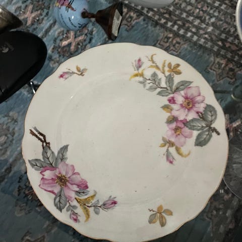 Tags: tallerkener, porcelæn, blomster, guldkant
