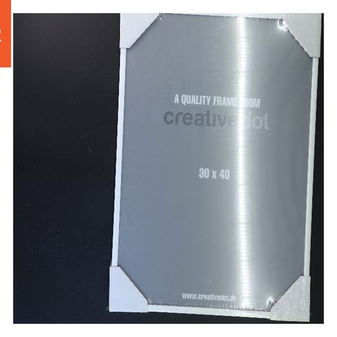En billedramme med en størrelse på 30x40 cm. Rammen er lavet af metal og har en hvid kant. På bagsiden har rammen fastgørelseselementer, der gør det muligt at hænge den op på væggen. Rammen er fra mærket CreativeDot. Tags: billedramme, vægophæng, dekoration.