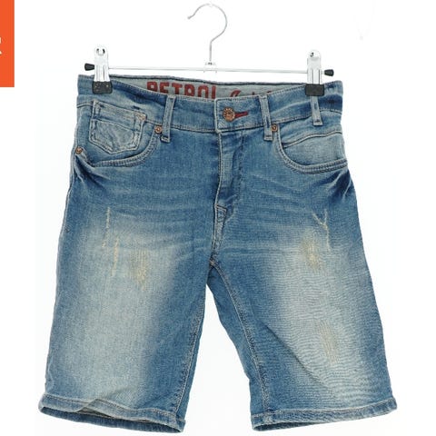 Disse shorts er lavet i et grå denimlook og har et lidt slidt design. Der er både traditionelle lommer på forsiden og bagsiden. Vi ser tydelig syning og detaljer ved lommer og talje. Shortsene kan rulles op ved benenden for et kortere look. Der er mærker og etiketter fra brandet Petrol Industries på shortsene.