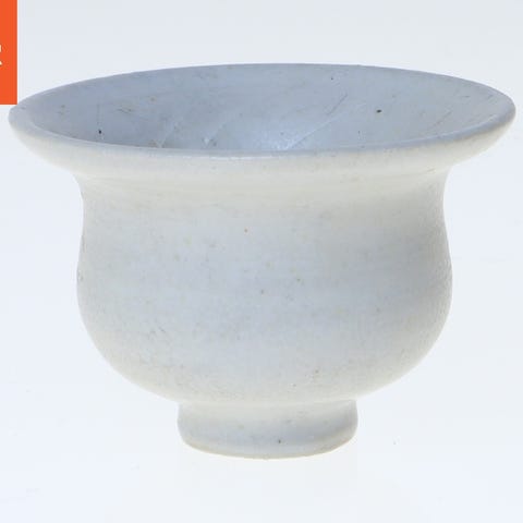 Denne lille keramiske skål har en diameter på 7 cm og er sort. Den er rund i form og har en glat overflade. Bunden er markeret med initialerne 'KS'. Skålen kan bruges som dekorativt objekt eller som en holder til små genstande.