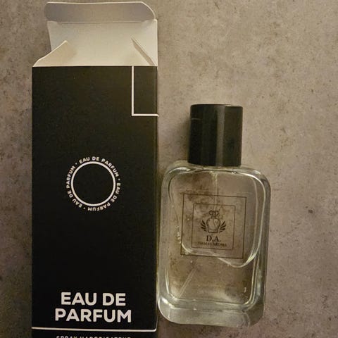 En flaske Eau de Toilette med en kapacitet på 50 ml. Flasken kommer i en lysegrøn æske med teksten 'Date Absolute Attraction'. Den har et minimalistisk design med et firkantet låg. Tags: parfum, date, absolut attraction.
