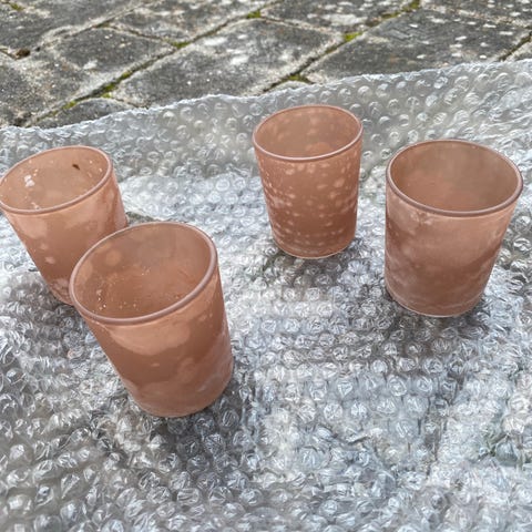 Bordpynt: Vaser og fyrfadsstager, samt små holder til f.eks. bordkort i glas