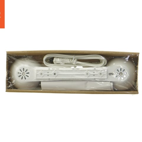 Denne genstand er en under-skab belysningsenhed med en kapacitet på 25 watt. Den kommer pakket i en papkasse og inkluderer en ledning til tilslutning. Designet er typisk for belysningsarmaturer, der monteres under skabe i et køkken eller arbejdsområde for ekstra belysning. Enheden har ventilationsåbninger, sandsynligvis for at forhindre overophedning.
