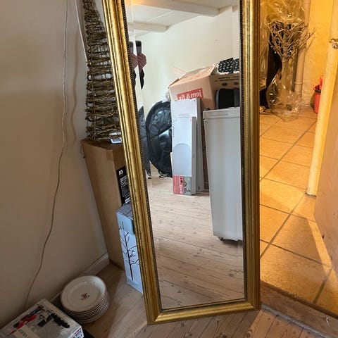 &Tradition spejl med rektangulær form og ramme i to farver. Yderste ramme er hvid med ornamenteret mønster, mens den inderste ramme er sort og glat. Spejlet egner sig til ophæng i entré, soveværelse eller stue. Mål ses på billederne med tommestok ved siden af rammen.