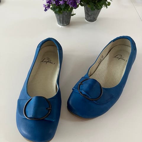 Super flotte ballerinasko fra Lofina i lækkert skind. Det er en str 38 og de er nærmest som nye (er kun "prøvegået" her hjemme), da jeg desværre har fået dem købt en anelse for små. Indersålen måler 25 cm. Nyprisen var 1299kr. Jeg sælger dem for 300 kr.