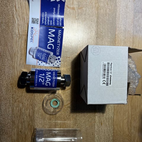 Kalk spalter til jernrør, afgiver faste magnetiske pulser, som spalter kalken så den ikke sætter sig fast i installationer, kan ikke fjerne kalk men gør at det ikke binder sig i rør og andre steder,
