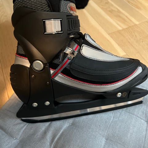 Davos skøjter i størrelse 36 i hvid farve. Klassiske snøreskøjter med høj skaft og hæl, som giver støtte omkring anklen. Overdel i glat materiale med snørehuller og kroge for justerbar pasform. Skøjterne har metal-klinger monteret under en sort sål. Velegnet til brug på isbaner til rekreativ skøjteløbstræning og fritidsbrug.