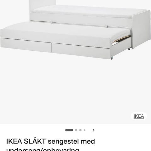 SLÄKT sengestel med fire opbevarings skuffer, to hylder & lammelbund fra IKEA.