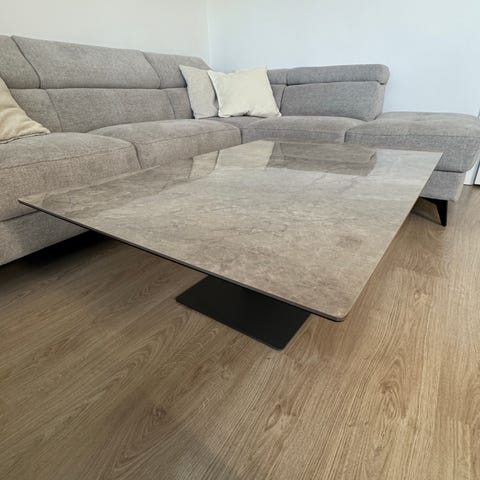 Sofabord med flot sort keramisk bordplade og mat sort metalstel.
