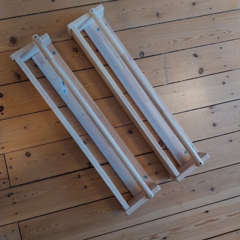 Fin hylde til børneværelset. Kan også hænges op med bunden i vejret til bøjler til fx udklædningstøj