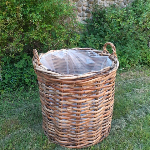 Flettet sankekurv med hank i naturfarvet flet - fod til at sanke