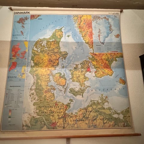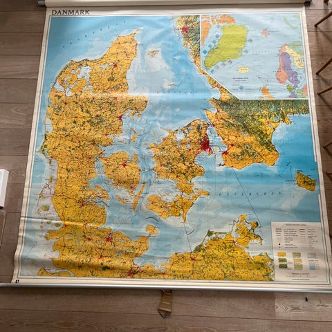 Danmark skolekort fysisk landkort. Vægkort med topografisk fremstilling af Danmark, inklusive øer og kystlinjer. Kortet viser højdekurver, terræn, byer og farvande og er egnet til undervisning, reference og geografisk overblik. Kan ophænges på væg i klasselokale, kontor eller hjem.