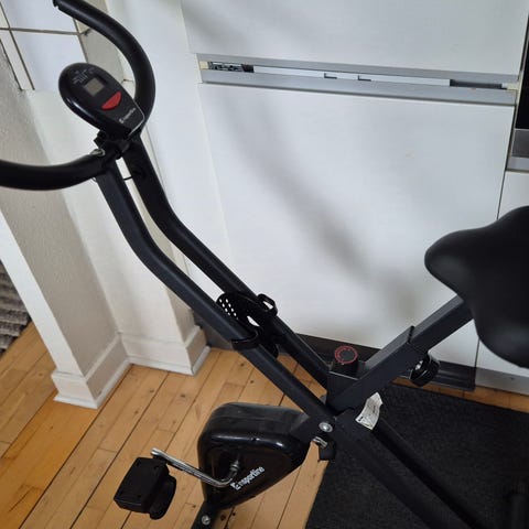InShape FB500 motionscykel i sort. Cyklen har justerbart sæde og styr samt indbygget træningscomputer med display til visning af træningsdata. Velegnet til indendørs konditionstræning og generel motion i hjemmet.