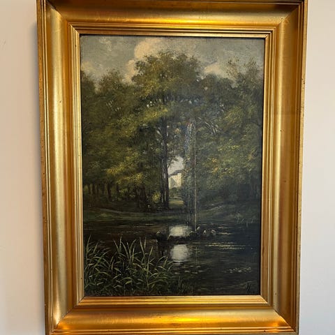 Billedet har nogle krakeleringer, men er ellers i fin stand. Kan sendes.