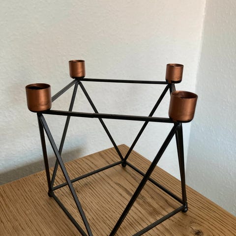 Lagerhaus kubus lysestage i sort metal. Lysestagen er udformet som en kubus med fire lyseholdere placeret øverst. Designet er geometrisk og enkelt og egner sig til almindelige stagelys. Velegnet som bord- eller vinduesdekoration i stue, køkken eller entré.