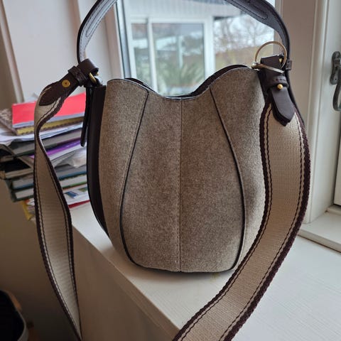 NB: tasken er ikke Zara, men Unipel. skuldertaske til kvinde i sølvfarvet materiale. Tasken har en kæderem, der kan bæres over skulderen eller i hånden. Ydersiden er dækket af små, metal-lignende elementer, som giver en glitrende overflade. Tasken lukkes med klap og metal-lås på fronten. Indvendigt er der foer i glat stof samt en lille åben lomme til mindre genstande som nøgler eller kort. Velegnet som mindre taske til hverdag eller fest, hvor der er behov for plads til mobil, pung og andre småting.