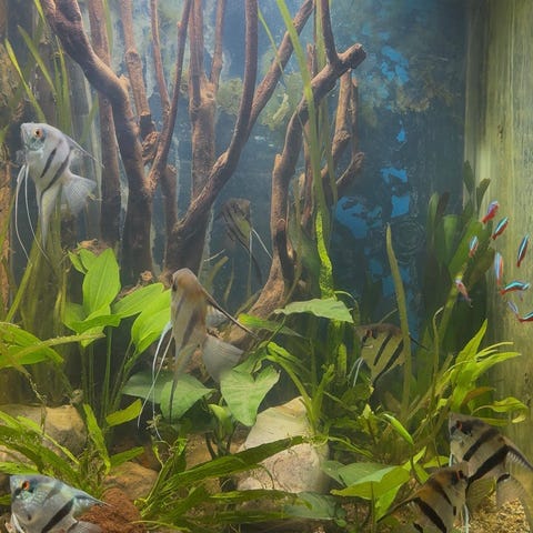 5 stk Super flotte og store voksne scalare Half Balck long fin. Sunde og raske. Sælges grundet omlægning af akvarie