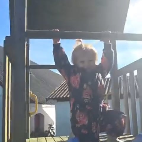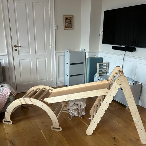 Solidt legestativ i træ. Mine børn har leget rigtig meget med det - fra de var små og syntes trapper og rutchebane var spændende - og også senere hvor det er blevet brugt som scene og til at køre biler på.