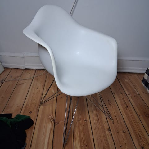 4 spisestole med eiffel-stel. Skal have lidt reparationer hist og pist. Er Faste i ryg. 2 stk. Dubsko mgl. Stedvis løs krom liste. Sh 46 cm. En samlet pris.