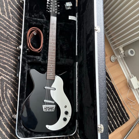 Danelectro 59 Dano 12. Guitaren er ca 1 1/2 år gammel og stort set ubrugt da jeg aldrig rigtigt er blevet gode venner med de 12 strenge. Der medfølger kasse og rem med Schaller straplocks