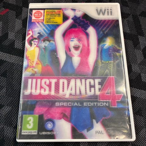 Ubisoft Just Dance 4 Special Edition Nintendo Wii spil. Musik- og dansespil til Nintendo Wii med flerspillerfunktion. Spillet indeholder 44 numre og forskellige dansemodi. Egnet til spillere fra 3 år og opefter ifølge PEGI-mærkning. Leveres på disk til brug med Nintendo Wii-konsol.