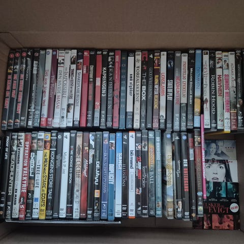 Blandet samling dvd film. Forskellige titler og genrer, både enkeltfilm og enkelte bokse. Standard dvd-format i plastcovers. Velegnet til dig, der ønsker en varieret samling film på fysisk medie.