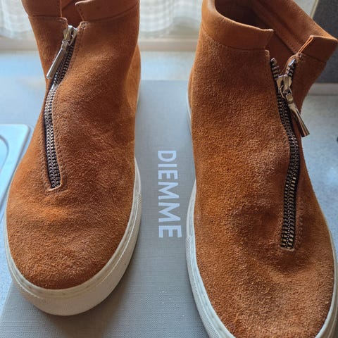Klassisk snørelukning med metaløjer og kroge. Brugt en gang.