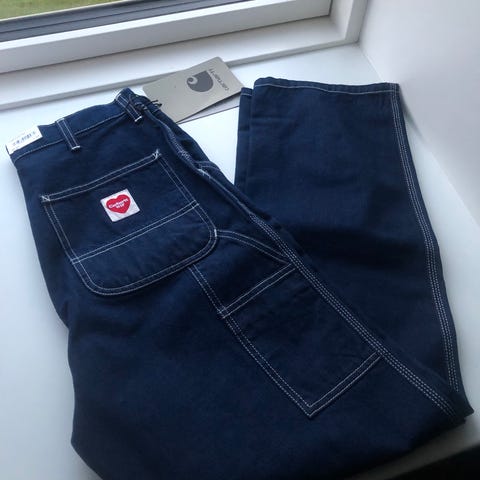 Bukser ubrugt, vasket en gang. Købt damemodel ved en fejl til min søn. Købt i Carhartt butik i København.