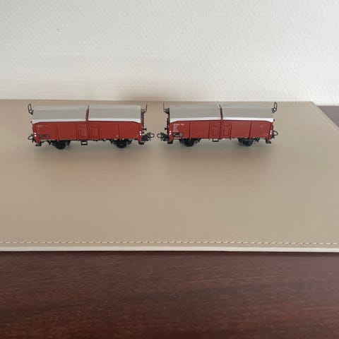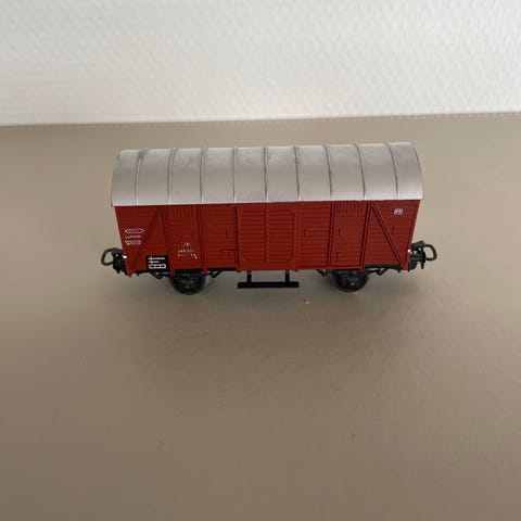 Godsvogn modeltog i brun farve med gråt tag. Vognen har to aksler, detaljeret undervogn og koblinger i begge ender, samt bramsehus. Kan afhentes i Kirke Hyllinge eller Ballerup. Sendes ikke