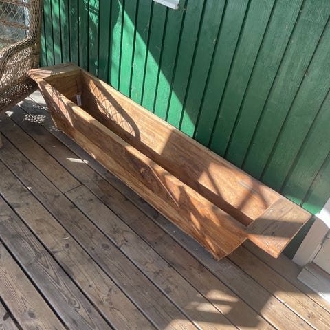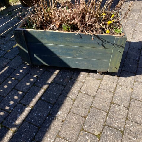 Træ vindmølle plantekasse i sort. Dekorativ plantekasse med integreret vindmølle, velegnet som pynt i have, på altan eller terrasse. Fremstillet i træ og malet sort. Kan bruges til beplantning eller som dekorativt element blandt andre potteplanter og haveindretning.