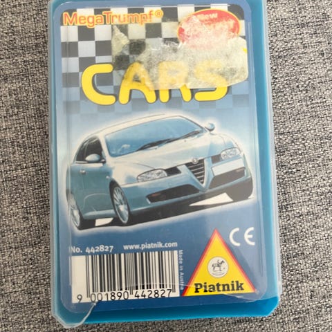 Piatnik Super Trumph bilkortspil sæt med 4 æsker. Sættet omfatter fire forskellige biltemaer: 200 km/tim, Autotradition, GT-biler og City-Cars. Hver æske indeholder et komplet kortspil med billeder og tekniske data for forskellige bilmodeller. Kortspillene er trykt på karton og leveres i plastæsker med motiv på låget. Velegnet som samlerobjekt eller til kortspil med biltema.