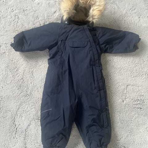 Wheat flyverdragt i blå til børn, unisex, str. 86. Dragten er fremstillet i polyester og har hætte, lange ærmer og lange ben. Den åbnes foran med lynlås, som går ned i benet for nem på- og afklædning. Der er elastik ved håndled og ankler samt elastik i taljen bagpå for bedre pasform. Flyverdragten har refleksdetaljer på benene for øget synlighed. Indersiden er foret for ekstra komfort.