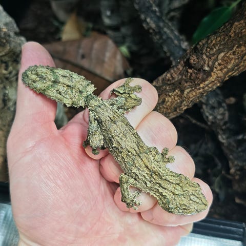 En særlig art med exceptionel camouflage. Kræver ordentlige forhold, lidt som en kamæleon, men når miljøet er korrekt, er de lette at holde. Spiser kun levende insekter. Ved aftale om køb hjælper jeg naturligvis med råd og vejledning, så dyrene får et godt liv.
