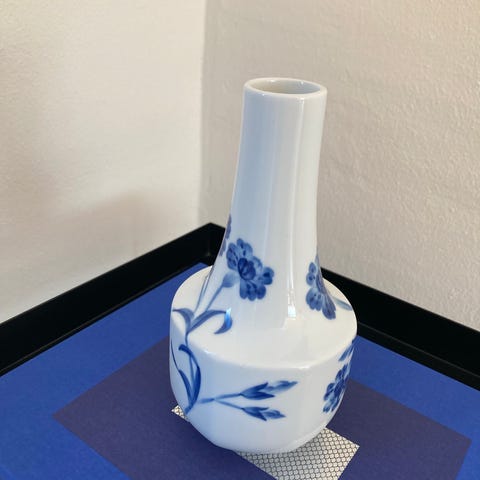 Vasen er 14 x 7 cm, 1.sortering og i hel og fin stand.