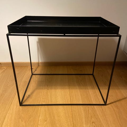 Godt brugt. Uundgåelige små ridser i bordpladen og lidt aftryk fra glas. Har fraset det ingen mangler.