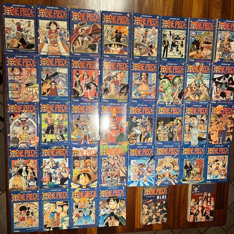 Komplet dansk One Piece manga samling inklusiv blue og red