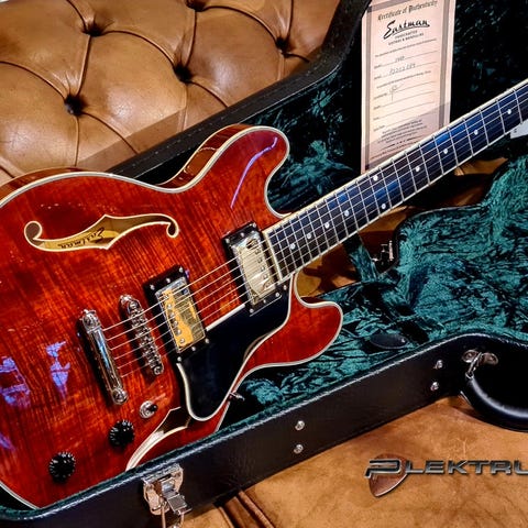 Den Ultra lækre Eastman T484 el-guitar på lager i Gold Burst.