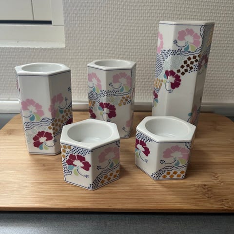 Bing & Grøndahl, Royal Copenhagen fyrfadsstager, speciel 6 kantet stager med flotte motiver/dekoration..