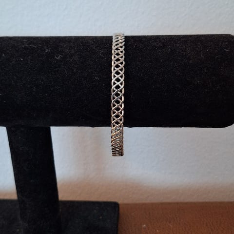 Smalt sølvfarvet armbånd med hammeret mønster.