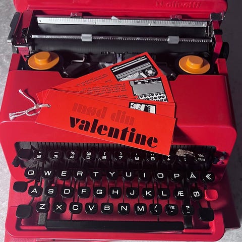 Designet af Ettore Sottsass i 1969 er Valentine ikke bare en skrivemaskine – den er et stykke designhistorie. Den blev skabt som et farverigt og legende alternativ til tidens kedelige kontormaskiner og er i dag en af de mest eftertragtede bærbare skrivemaskiner blandt samlere.