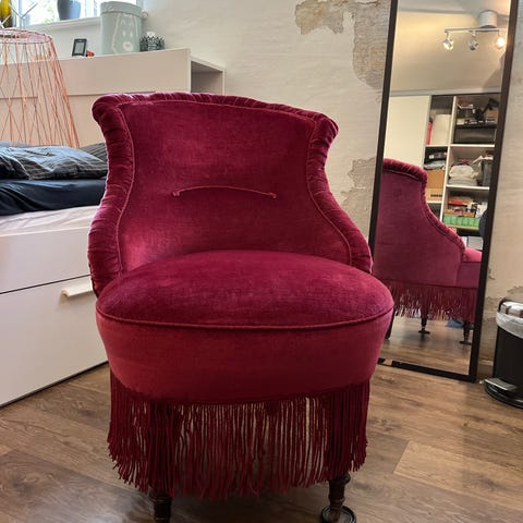Hvid plysstol i rigtig god stand. Kan afhentes på Frederiksbjerg i Aarhus C