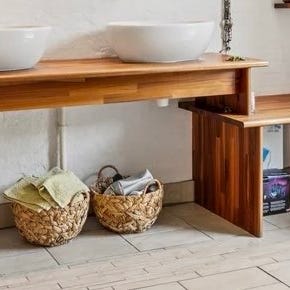 Håndvasken er nedsænket i bordplade og har desværre en lille flænge, derfor den lave pris.