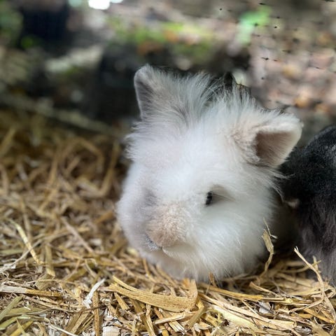 To søde hunkaniner som er søstre. De er cirka 6 måneder gamle.