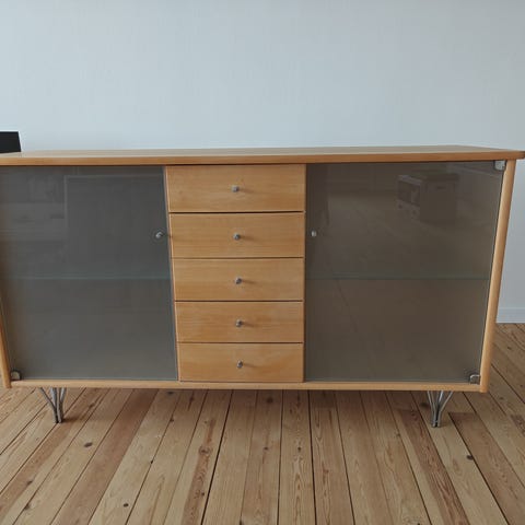 Skænk i lys træ, med gode funktioner indeni, den er med skydelåger.