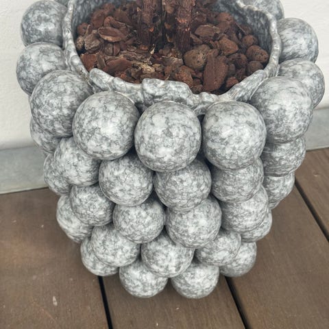Vasen er lavet i blåt stentøj med figurer formet som valmuefrøstande, der er formet og sat på i hånden. Lille skår på en af “valmuerne” se billede. Ellers i fin stand. Foretrækker afhentning men kan sendes efter aftale.